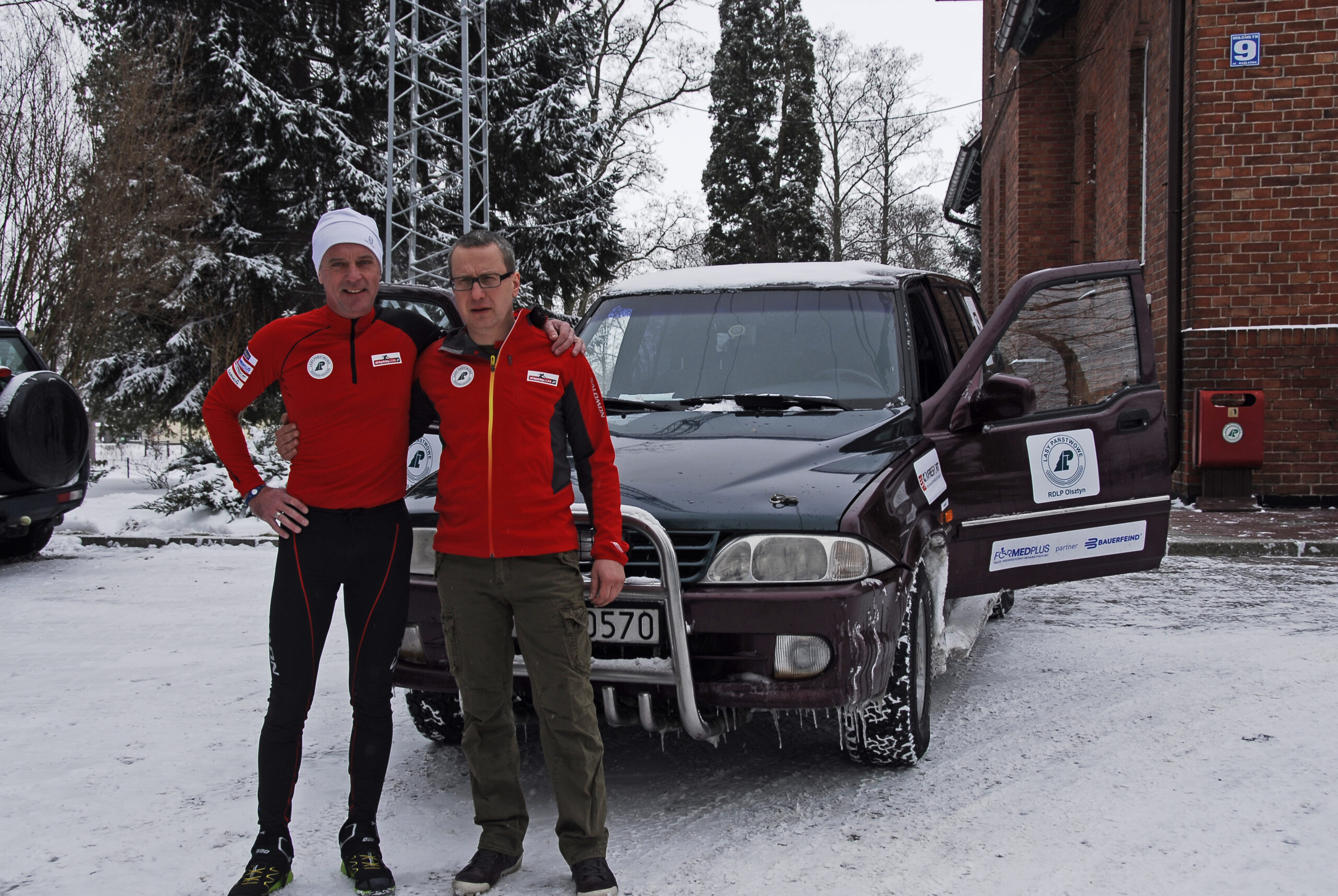 Trochę kluczyliśmy, ale cały czas posuwaliśmy się we właściwym kierunku. W okolicy 20 km zacząłem już odczuwać zmęczenie w efekcie wyjątkowo ciężkiego biegania po śniegu i lodzie (dobrze, że miałem nakładki na buty). Zaczęły się też pojawiać, jak je nazywam – „bóle błądzące”, które nagle gdzieś się w ciele pojawiają i przez jakiś czasu biegu dokuczają, po czym równie nagle znikają. To są sygnały od coraz bardziej zmęczonego organizmu, żeby zaprzestać jego dalszego torturowania. Więc tymi bólami się nie przejmowałem, mając w pamięci słowa Scotta Jurka, który radził, aby taki ból…wypuścić uszami. Niestety, jeden ból nie chciał w ten sposób zniknąć i dwa kilometry przed metą dzisiejszego etapu już wiedziałem, że nie jest ze mną dobrze. Bolał mnie przyczep mięśnia w okolicy lewego biodra naciągnięty wskutek ciągłego ślizgania się po lodzie, ukrytym pod śniegiem. Zwłaszcza na podbiegach, których wcale mało nie było. Miałem już kiedyś tego rodzaju kontuzję, więc dobrze wiedziałem, czym może „pachnieć” dalsze przeciążanie nogi w tym miejscu. A ponieważ mimo tych śnieżno-lodowych warunków dystans półmaratonu (21,079 km) pokonałem poniżej 2 godzin, za radą Grześka mocno zwolniłem, przechodząc miejscami do marszu. Na szczęście do mety dzisiejszego etapu było już blisko i niebawem, dokładnie po 2 godzinach i 27 minutach biegu znalazłem się w… Ameryce. 😊 Ale tej na Mazurach, pod Olsztynem. Muszę teraz zastosować zabrane ze sobą maści i liczyć na to, że jutro już nie będzie tak ciężkich warunków terenowych, bo jeżeli miałoby być tak samo jak dzisiaj, to może być naprawdę kiepsko…Pobierz