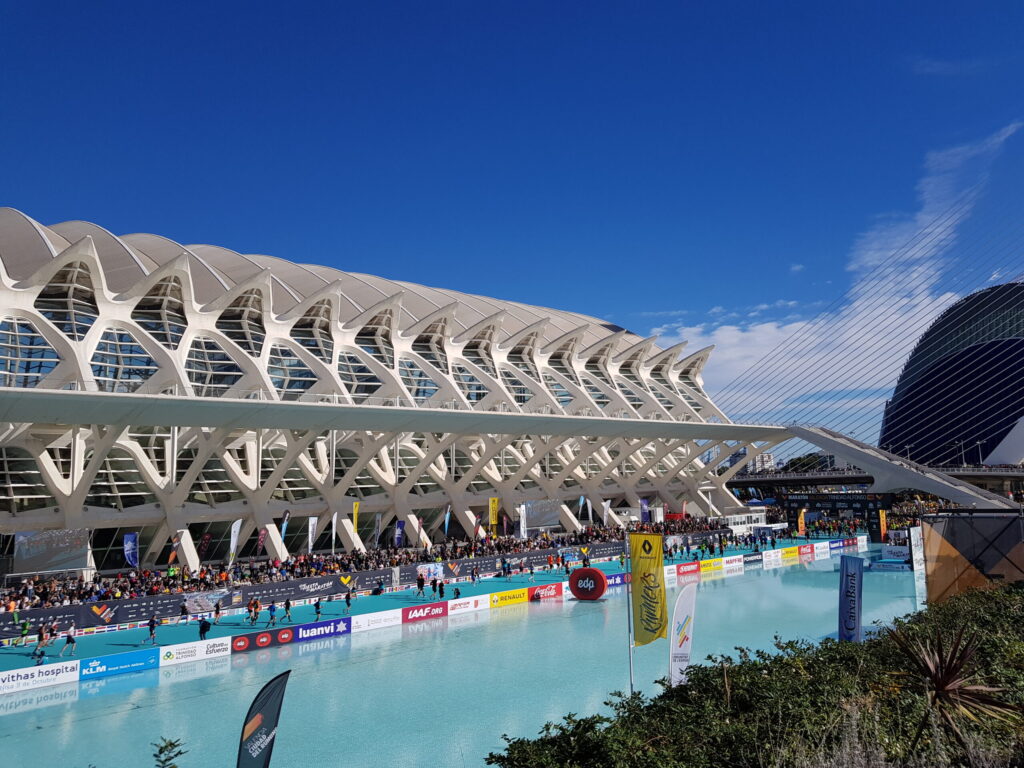 Sam maraton jest faktycznie bardzo fajny. Płaski, szybki i zazwyczaj z dobrą pogodą na początku grudnia. Do tego fantastyczny finisz obok jednej z najbardziej charakterystycznych budowli Walencji. Bieg ma od jakiegoś czasu Gold Label IAAF, ale do samej organizacji można mieć kilka uwag, jak choćby ogromne kolejki po odbiór pakietów startowych (stałem z kolegą aż 1,5 godziny ! ), czy wpuszczanie tysięcy biegaczy do strefy startowej jedną, wąską furtką (w rezultacie, dostałem się na start kilka minut po rozpoczęciu biegu – start odbywał się falami). Z samego maratonu zapamiętałem bliskość morza, szerokie ulice i okazałą bramę na 32 kilometrze z hasłem: „Break your wall !” (Złam swoją ścianę) oraz ekscytujący finisz po niebieskiej, sztucznej nawierzchni. Chociaż grudniowe słońce w Walencji paliło niemiłosiernie (23 stopnie C w grudniu !), to udało mi się po raz kolejny złamać barierę 4 godzin w maratonie, więc byłem z siebie zadowolony. Ale bardzo czekałem na wolny czas po maratonie, aby spróbować specjałów kulinarnych Walencji, o których wcześniej tyle słyszałem.