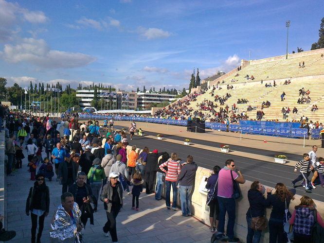 Kiedy już mocno wycieńczeni biegacze pokonają najwyższe wzniesienie ateńskiego maratonu na 32 kilometrze trasy, mogą nieco odetchnąć. Stamtąd bowiem rozpoczyna się teoretycznie łatwiejszy, bo łagodnie opadający końcowy etap biegu prowadzący m.in. aleją maratońską w Atenach z niezapomnianym finiszem na starożytnym Stadionie Panathenajskim. Ten zachwycającej urody obiekt sportowy został zbudowany w 329 roku przed naszą erą. Niecałe 200 lat później został przebudowany, a jego wykonane z marmuru trybuny mogły pomieścić już wtedy około 50 tys. kibiców. Ponowna renowacja Panathenajskiej areny, nazywanej również Kallimarmaro miała miejsce w końcu XIX wieku, w celu przygotowania godnej areny dla pierwszych, nowożytnych igrzysk olimpijskich. To właśnie na bieżni tego stadionu finiszował wówczas grecki bohater Spyros Louis, a już współcześnie – takie legendy światowego maratonu jak wspomniany wcześniej Bikila Abebe, Stefano Baldini, czy też wielka portugalska biegaczka Rosa Mota. Na tej samej, jedynej na świecie czarnej, tartanowej bieżni finiszują również każdego roku – często ze łzami wzruszenia w oczach – tysiące maratończyków z całego świata, spełniając w ten sposób jedno z największych marzeń ich biegowego życia. Pobiec i ukończyć maraton, właśnie tutaj w greckich Atenach – w kolebce maratonu, gdzie legenda tego wspaniałego biegu się narodziła.