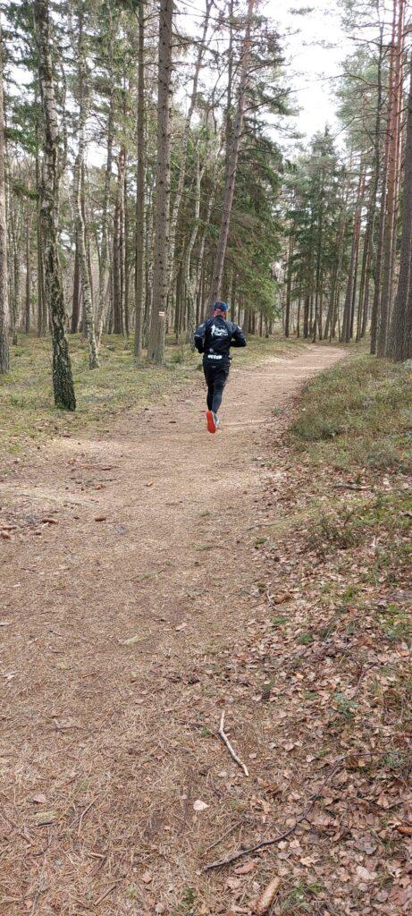 Od wczoraj na trasie wyprawy towarzyszy nam marka New Balance, której buty pod nazwą Hierro spisują się jak na razie znakomicie. Natomiast przez cztery wcześniejsze dni, naszym partnerem technicznym był japoński ASICS, którego produktom poświęcę teraz chwilę. Zwłaszcza butom ASICS Gel-Nimbus Lite, które bardzo mi pomogły przebiec kolejne prawie 100 km wyprawy Baltic Tour. Przede wszystkim były wyjątkowo komfortowe, czego akurat po Nimbus-ach się spodziewałem, bo wiele lat temu był to mój pierwszy, świadomie kupiony but biegowy. I wiedziałem, że mogę w nim pokonać każdy, biegowy dystans. Zaskoczyła mnie natomiast ich obecna lekkość oraz dynamika odbicia, która naprawdę bardzo mi odpowiadała. Jeśli dodać do tego, że cholewka butów Nimbus Lite została wykonana w ponad 60 procentach z materiałów pochodzących z recyklingu, to wpisały się one doskonale w przekaz całej wyprawy Baltic Tour 2022, czyli „Think Green”. Wspomnę również słowo o kurtce w której biegłem przez kilka ostatnich dni (Albert także), czyli modelu Accelerate Waterproof. Wprawdzie deszcz, ani śnieg ani razu nie padał, ale ta kurtka ochroniła nas wiele razy przed porywistym, nadmorskim wiatrem. W dodatku, jej dopasowany krój wybitnie nam obu odpowiadał, natomiast jej „ukryte” boczne kieszenie, które odkryłem dopiero drugiego dnia 🙂  sprawiły mi sporo radości, gdyż mogłem w nich schować telefon, słuchawki, albo mokre od potu rękawiczki. Brawo ASICS za tą kurtkę!