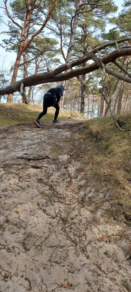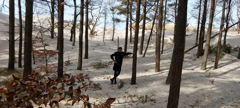 Dzisiejszy etap zakończyliśmy planowo w miejscowości Rowy, leżącej na skraju Słowińskiego Parku Narodowego w którego tereny jutro wbiegniemy. Już dzisiaj na trasie pojawiły się pierwsze ruchome wydmy, zagarniające nadmorski las. Teraz będzie ich z pewnością dużo więcej, ale w czasie jutrzejszego, bardzo długiego (prawie 35 km) etapu po bałtyckiej plaży, wszystkie karty będzie rozdawała pogoda. A ta niestety, według prognoz ma nie być najlepsza. Dlatego trzymajcie jutro mocno kciuki! Vamos a Łeba! 😊