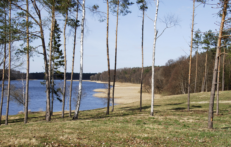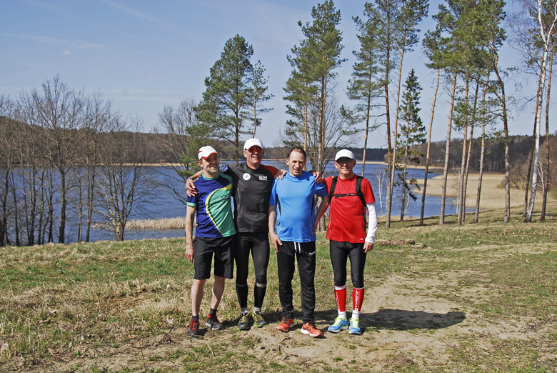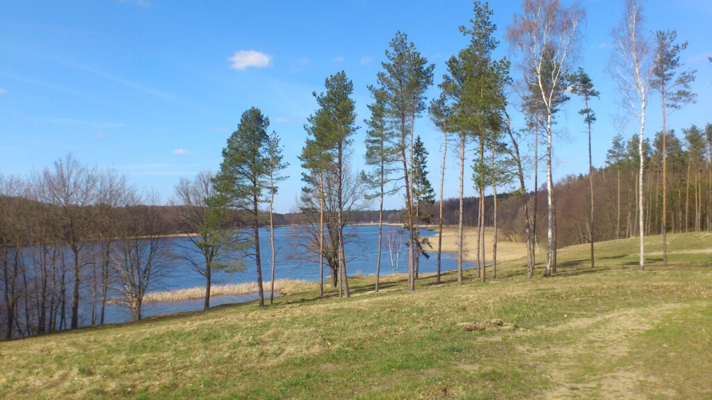 Ruszyliśmy spod leśnej osady Gardzień na lewym brzegu Jezioraka, który nie dość, że jest najdłuższym jeziorem w Polsce, to również jednym z największych (3219 ha). Mało tego, to właśnie na Jezioraku leży największa, śródlądowa wyspa w Europie, czyli Wielka Żuława (pow. 82 ha), gdzie znajdują się również pozostałości staropruskiego grodu. Słonko przygrzewało, a my w sile trzech chłopa tzn. Darek z Iławy, Henryk z Kwidzynia i ja – podążaliśmy wolno do przodu. Wolno bo bałem się powtórki z ostatnich kilometrów dnia wczorajszego, więc wolałem raczej dmuchać na zimne, czyli biec wolno, żeby zanadto nie nadwyrężać cały czas bolącej nogi. Na szczęście Darek i Henryk, to wybitne, biegowe „gaduły” 😊, więc udawało mi się czasem nawet zapominać o dokuczliwej kontuzji.
