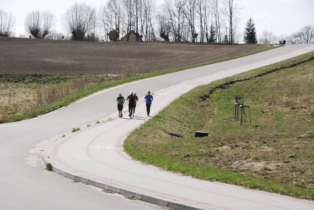 Prawy brzeg Jezioraka okazał się być zupełnie inny, niż jego lewy odpowiednik. Lasów tu już nie widzieliśmy, za to rozciągały się uprawne pola i wioski, położone nad samym jeziorem, gdzie niektórzy mieszkańcy powystawiali sobie niezwykle okazałe domy, godne podwarszawskiego Konstancina… Nigdzie wcześniej przez ponad 900 km biegu dookoła Mazur, takich domostw, jak te dzisiejsze pod Iławą z Grześkiem nie widzieliśmy. Dzięki super towarzystwu chłopaków z którymi dzisiaj biegłem, jakoś pokonałem te kolejne 25 kilometrów, ale widzę już, że zaczynam odczuwać każdy, dodatkowy kilometr więcej. Widocznie, biegnę już, a właściwie truchtam, na oparach (dzisiejsze tempo to zaledwie 6:56 min/km, czyli zwykły jogging, a nie prawdziwe bieganie). Niestety, nic już nie mogę z tym zrobić i muszę jakoś „dotruchtać” te, ostatnie 84 km do mety w Kudypach. Darek zadał mi też dzisiaj następujące pytanie: czy gdybym miał tą samą wiedzę, którą mam teraz 24 kwietnia, po 36 dniach trwania „Mazury Tour 2013″ i ponad 900 pokonanych kilometrach, to czy wystartowałbym ponownie ? Tym razem, musiałem się dłużej zastanowić nad odpowiedzią…