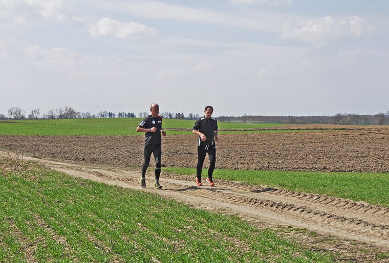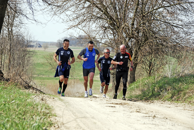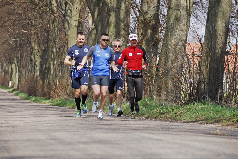 Dzisiaj biegłem właśnie w kierunku Ostródy i w dodatku z nie byle kim… Oto bowiem na starcie w Tynwałdzie pojawili się trzej biegacze z Olsztyna z klubu AKM Olimp przy których nawet nie powinienem stać, bo cała trójka – Janek, Jurek i Piotrek legitymuje się wynikami w maratonie na poziomie 2:30 godz., a ostatni z nich, czyli Piotrek wygrał nawet w 1995 roku maraton w Wiedniu z czasem 2:15 godziny, pokonując wszystkich Kenijczyków oraz Etiopczyków! Rany boskie, co ja tutaj z nimi robię ! Pomyślałem sobie, włączając mojego Garmina na starcie. Przecież, jak mnie zacznie boleć noga, to oni się zanudzą na śmierć…