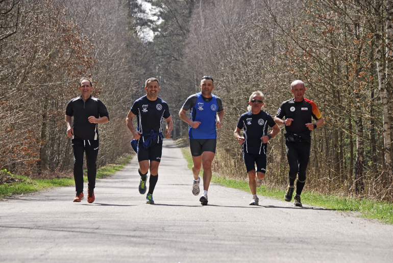 Na szczęście, ku mojemu zdziwieniu noga dzisiaj nie bolała! Byłem w szoku, ale już wiem dlaczego. Wczoraj Grzesiek przygotował mi bowiem kąpiel z gorącym wywarem z gałązek sosny według przepisu Mirka Plawgo, z którym biegłem przez Pasłęk. Podobno to stary ludowy sposób na regenerację mięśni i ścięgien stosowany od lat przez doświadczonych biegaczy, którego ja jednak nie znałem. Gdy powiedziałem biegnącym dzisiaj ze mną chłopakom o rewelacyjnym działaniu „mirkowej” terapii, szybko otrzymał dożywotni tytuł – „Szamana z Pasłęka” ! 🙂 Ponieważ lewa noga mnie naprawdę nie bolała więc sunęliśmy dosyć szybko, oczywiście jak na mnie, bo dla moich trzech dzisiejszych towarzyszy, pewnie to było dużo za wolno. 😊 Chociaż Janek co jakiś czas kontrolował tempo i kazał nam zwalniać, za co otrzymał drugi przydomek dzisiejszego dnia, czyli „Strażnik tempa”. Biegowe „gadulstwo” kwitło dzisiaj niemiłosiernie ! No po prostu, gadaliśmy jak najęci ! 😊 O wszystkim, co tylko dotyczyło biegania, trenowania, wychowania poprzez sport, o sztuce utrzymywania się w formie przez długie lata, o kontuzjach. Ale były też i kawały. niekoniecznie biegowe…