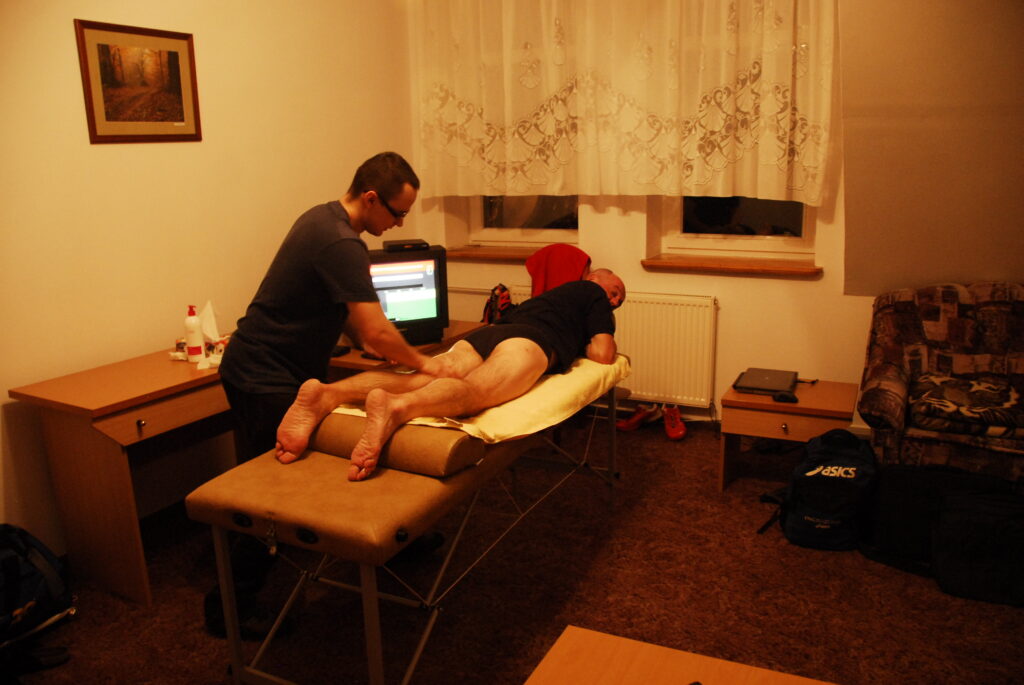 Wiedziałem ponadto, że od początku będę miał towarzystwo triatlonistów z Susza, więc zapowiadało się, że będzie miło. Wprawdzie moje łydki po wczorajszym masażu niewiele odpuściły (wciąż zakwasy straszne…) i z dużym trudem schodziłem rano po schodach, niemniej liczyłem na to, że te bolące łydki po prostu rozbiegam na pierwszych kilometrach. Tak więc generalnie, samopoczucie przed dzisiejszym biegiem było dobre, zwłaszcza, że cieszyliśmy się wspaniałą gościną i opieką Nadleśnictwa Susz, w osobie Pana Nadleśniczego Jacka Karczewskiego, który gdyby mógł to by nam z Grześkiem prawie nieba przychylił…)