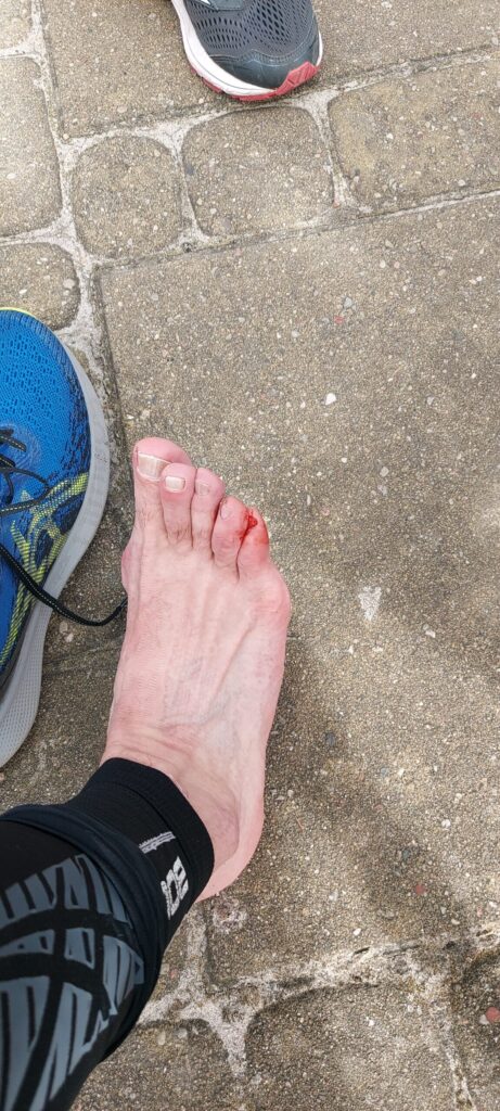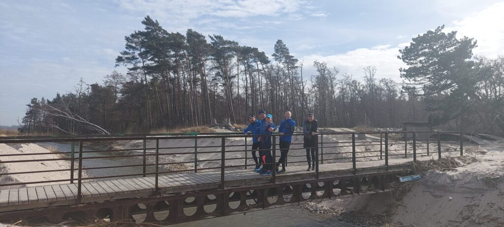Jednym z podstawowych elementów przygotowań do maratonu są długie wybiegania liczące najczęściej po około 30 km, bo dopiero na takim dystansie organizm biegacza jest w stanie naprawdę poczuć, jak wygląda zmęczenie w tak długim biegu. I nie chodzi tu raczej o intensywność samego wysiłku, ale o jego długotrwałość. Bo w okolicy 30-32 km już naprawdę odechciewa się biegać… Mój dzisiejszy, ósmy już etap Baltic Tour 2022 miał prawie 30 km i był jednym z najcięższych od początku całej wyprawy. Tym bardziej, że rano czułem jeszcze w nogach dwadzieścia kilka kilometrów z dnia wczorajszego, słońce schowało się za chmurami, a silny wiatr w twarz postanowił sprawdzić naszą odporność psychofizyczną. Z braku lepszego zajęcia, na pierwszych kilometrach dzisiejszego biegu z Albertem, pogrążyliśmy się w rozważaniach na temat maratonu – jedynego w swoim rodzaju biegu na tym królewskim dystansie 42,195 km. Nasze rozważania były o tyle uzasadnione, że Albert właśnie przygotowuje się do debiutu na tym dystansie, a ja swoje ukończone maratony już niedługo przestanę liczyć. 😊 W każdym razie dzisiaj mieliśmy zrobić naprawdę długie wybieganie, co podsumowaliśmy znanym stwierdzeniem biegaczy, że maraton to ból, do którego trzeba się przyzwyczaić i po prostu go…zignorować przez ostatnie 10-12 kilometrów. Dzisiaj mieliśmy do przebiegnięcia trochę mniej, ale łączna liczba przebiegniętych kilometrów od początku wyprawy Baltic Tour (już ponad 180 km) zaczyna wywierać na mnie coraz większy wpływ. Ból mojej, lewej nogi niestety nie ustępuje, a dzisiaj do tego doszło jeszcze bolesne obtarcie palców prawej stopy na poprzednim etapie.