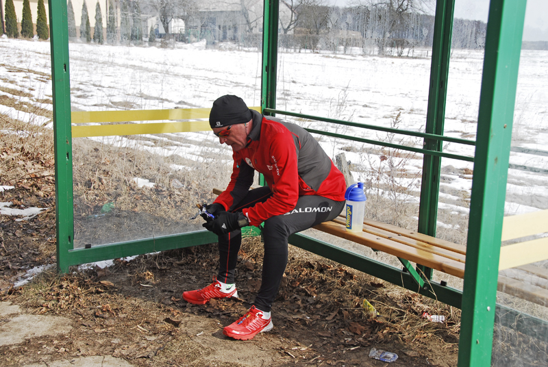 Uzmysłowiłem sobie dzisiaj, że nie miałem jak dotąd ani jednego, bezwietrznego etapu ! Wieje praktycznie bez przerwy. Skarżyłem się już na ten wiatr podczas poprzednich etapów, ale to co było dzisiaj, to byla po prostu masakra ! Dwadzieścia sześć kilometrów biegu pod lodowaty, ostry wiatr, wiejący cały czas prosto w twarz !