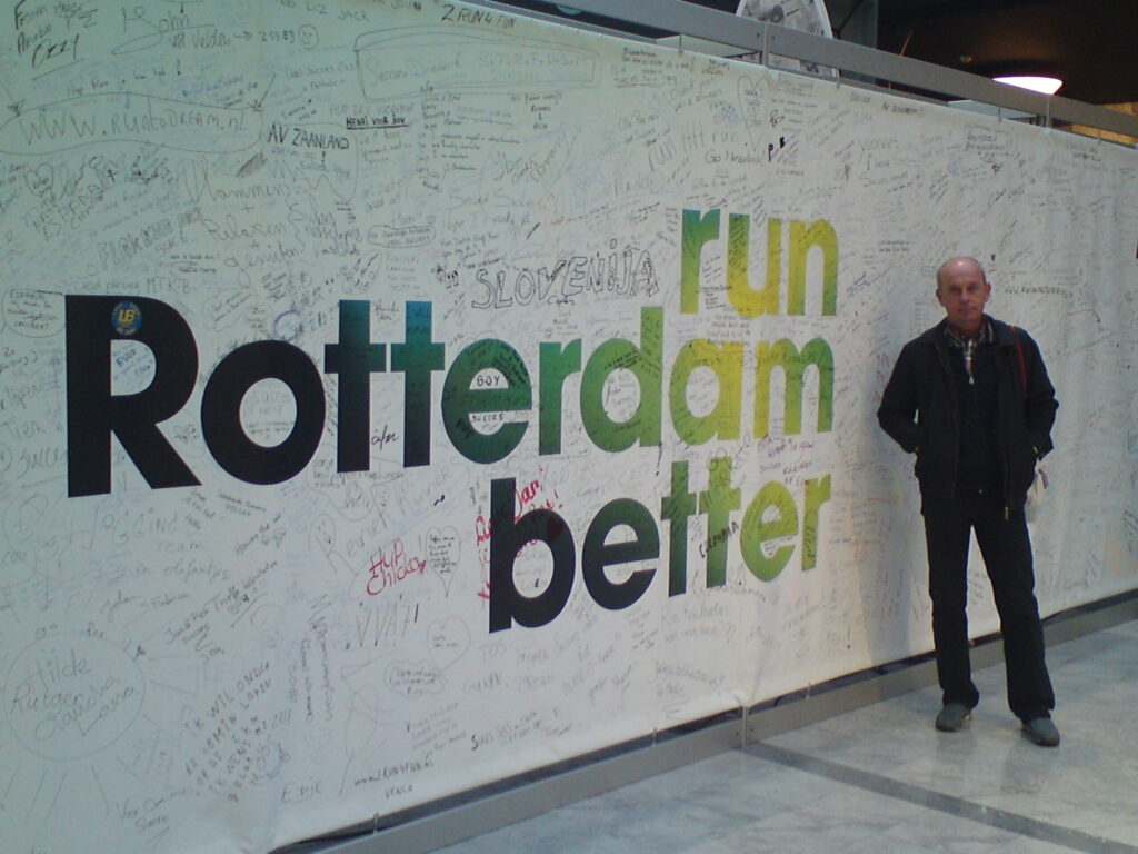 Natomiast moją logistyczną pomyłką był sam nocleg w Rotterdamie (dzień przed startem), gdyż start maratonu był o godz. 11:00, a pociąg z Amsterdamu dojeżdża do stacji Central Station Rotterdam (tuż obok  miejsca startu) w zaledwie 40 minut. Co jest o tyle istotne, że oferta hotelowa, a takżee urok i atrakcje turystyczne obu miast są nieporównywalne ( z ogromną przewagą  Amsterdamu :).  Potem, już na mecie okazało się, że wziąłem udział w jednym z najszybszych maratonów ostatnich  lat, którego ówczesny zwycięzca – Patrick Makau (Kenia) uzyskał czas 2:04:48, czyli wynik o niecałą minutę gorszy od jego rekordu świata w maratonie !  W efekcie, sam maraton serdecznie polecam, choć przy lepszej pogodzie i noclegu w przeddzień zawodów w nieodległym Amsterdamie.